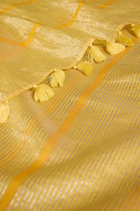 Elegant yellow silk cotton saree with delicate embroidery and rich gold tested zari, perfect for festive occasions.