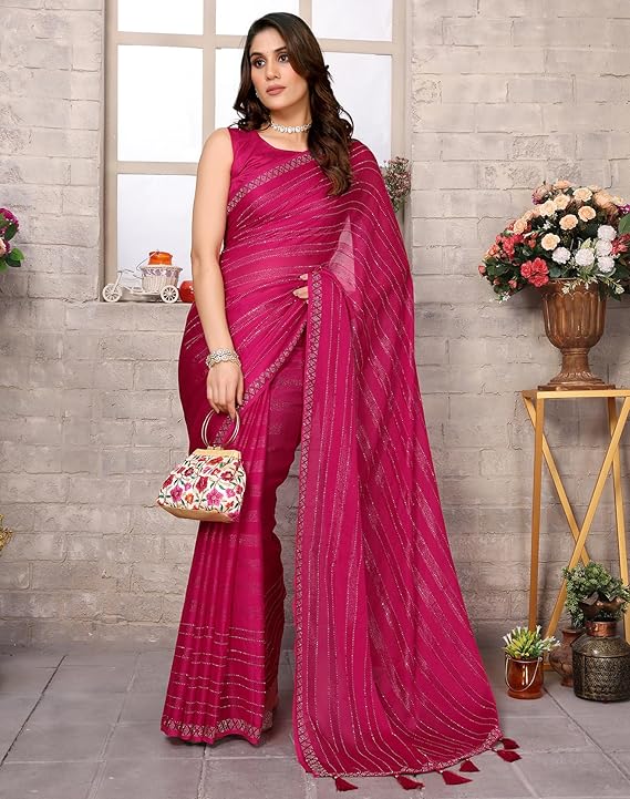 Premium Rangoli Fabric: Crafted from high-quality Rangoli fabric, this saree ensures a luxurious and soft drape, keeping you comfortable while adding a touch of elegance to your wardrobe.