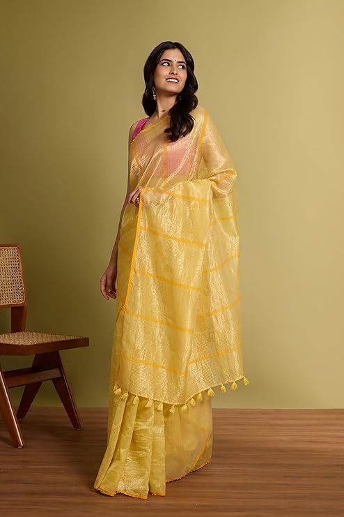 Elegant yellow silk cotton saree with delicate embroidery and rich gold tested zari, perfect for festive occasions.