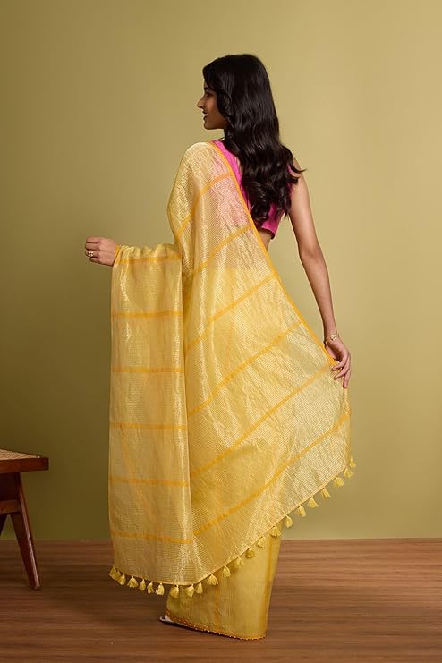 Taneira Women Yellow Pure Silk Cotton Embroidered Saree